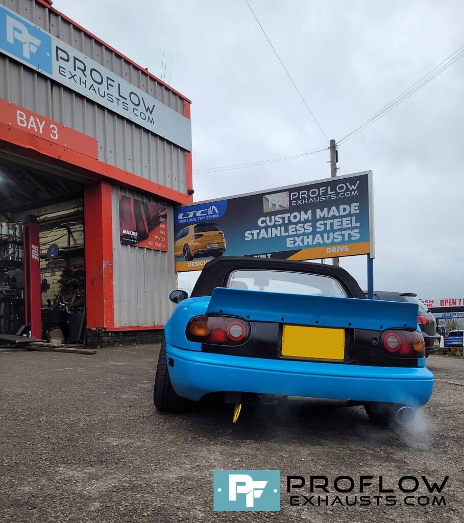Mazda Mx5 Custom Exhaust 3 Published 21st March 2023 at 909 × 1024 in Proflow Custom Exhaust Mazda MX5 Built with Stainless Steel Cat Back Single Exit with TX196 Burn Tip Effect Tailpipe ← Previous Next →